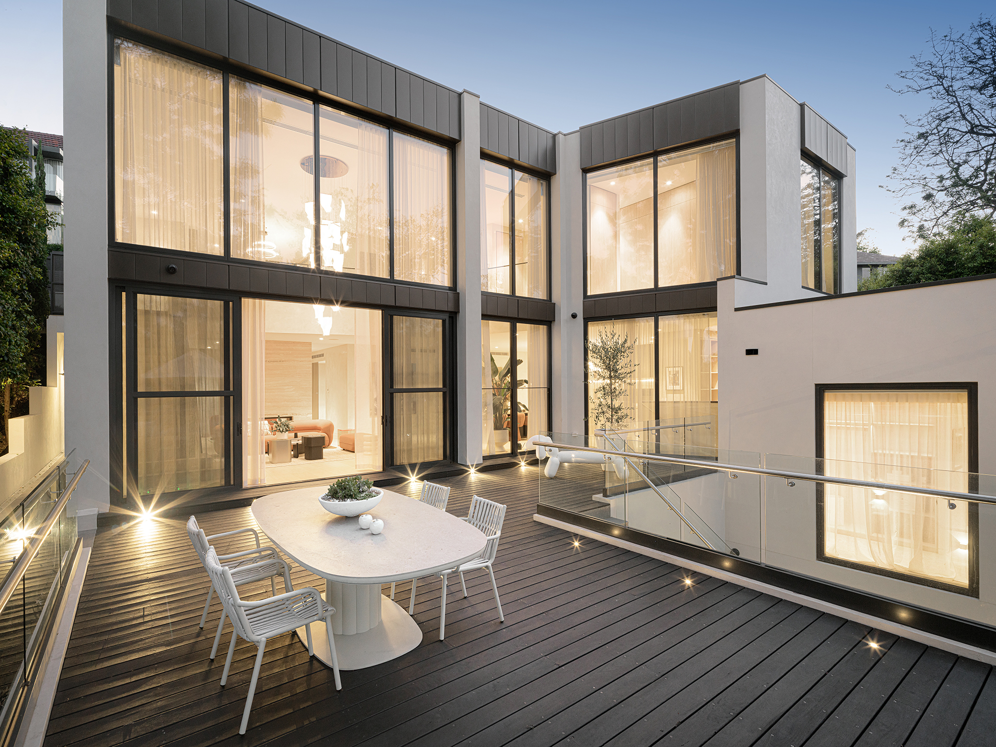 Nestled along the Yarra River, this contemporary residence seamlessly integrates with its terraced landscape. The design maximizes natural light and river views through expansive glazing, while tiered outdoor spaces create a dynamic connection between the home and its surroundings. With clean lines, minimalist forms, and high-quality materials, the house offers a tranquil retreat. Natural stone, warm timber, and thoughtful landscaping enhance the serene ambiance, while the strategic use of glass balustrades preserves open views. The design reflects a harmonious balance between architecture and nature, creating a modern yet inviting living environment.